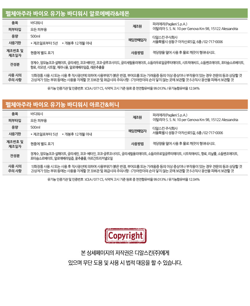 제품 주요 사양 (피부타입, 색상(호, 번) 등)